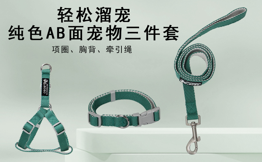 • 純色系列AB面寵物三件套牽引帶見詳情頁